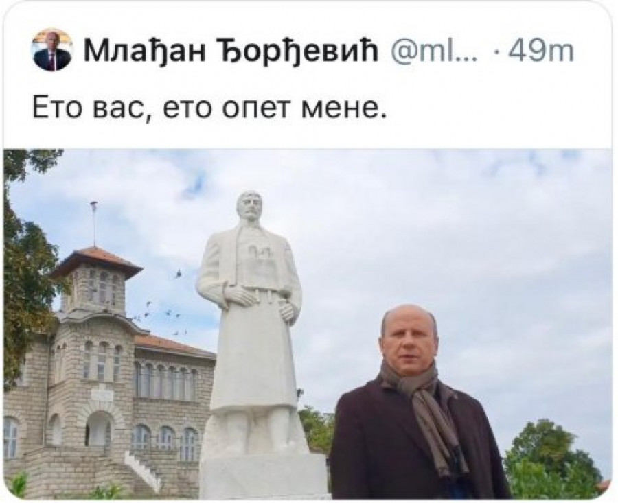 Naime, Đorđević se slikao ispred spomenika Karađorđu i fotografiju je podelio na Tviteru, ali je napravio težak gaf kada je u pitanju opis.