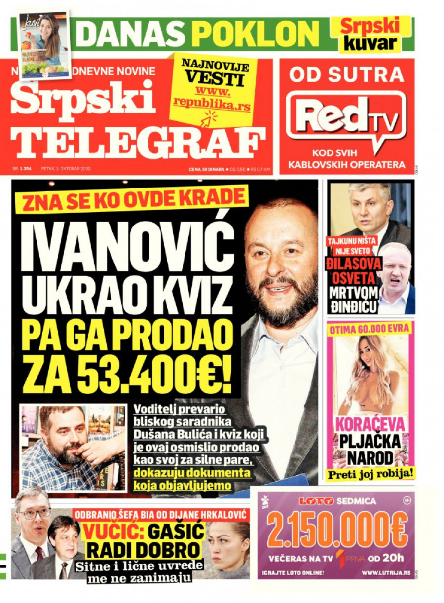 ZNA SE KO OVDE KRADE! Ivanović ukrao kviz, pa ga prodao za 53.400 evra!
