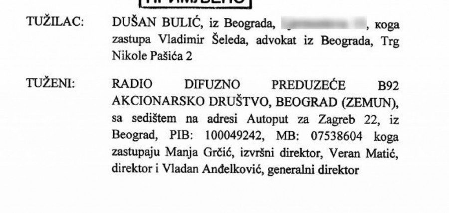 Na pitanje dokle se stiglo u sporu sa Bulićem u B 92 nisu odgovorili do zaključenja ovog broja.