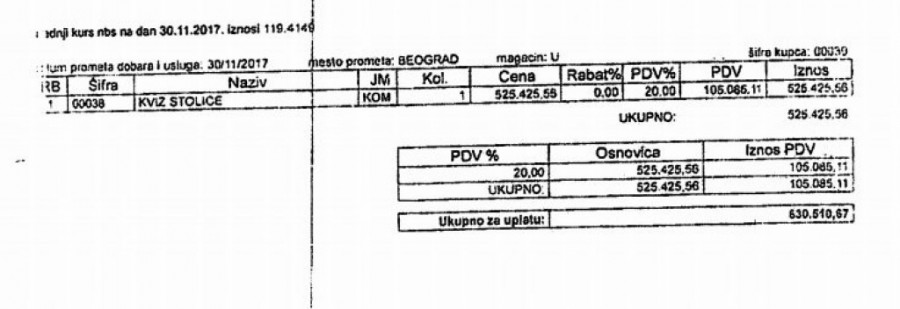 Tokom dve godine emitovanja, od 2017. do 2019, prikazano je četiri sezone kviza "Stolice", odnosno ukupno 267 epizoda. S obzirom na to da u ugovoru piše da je svaka epizoda koštala 200 evra, ispada da je Ivanović na krađi zaradio najmanje 53.400 evra.