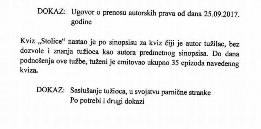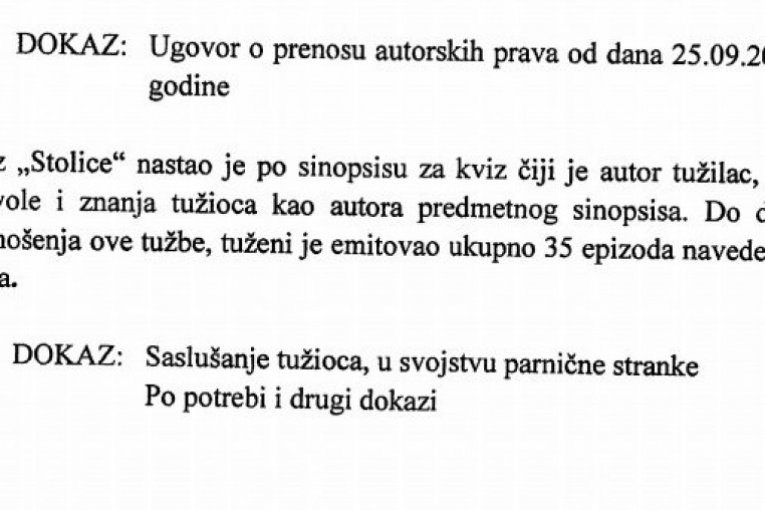 Prema ugovoru koji je Ivanović kao direktor firme "Pear creative production" potpisao sa tadašnjom O2, ali i fakturama isplate više je nego jasno da je on tuđu ideju i kviz prodao kao svoje. U tužbi koju je Bulić podneo Višem sudu kao dokaz on je podneo sinopsis emisije koju je osmislio, a koju je Ivanović besramno pokrao.