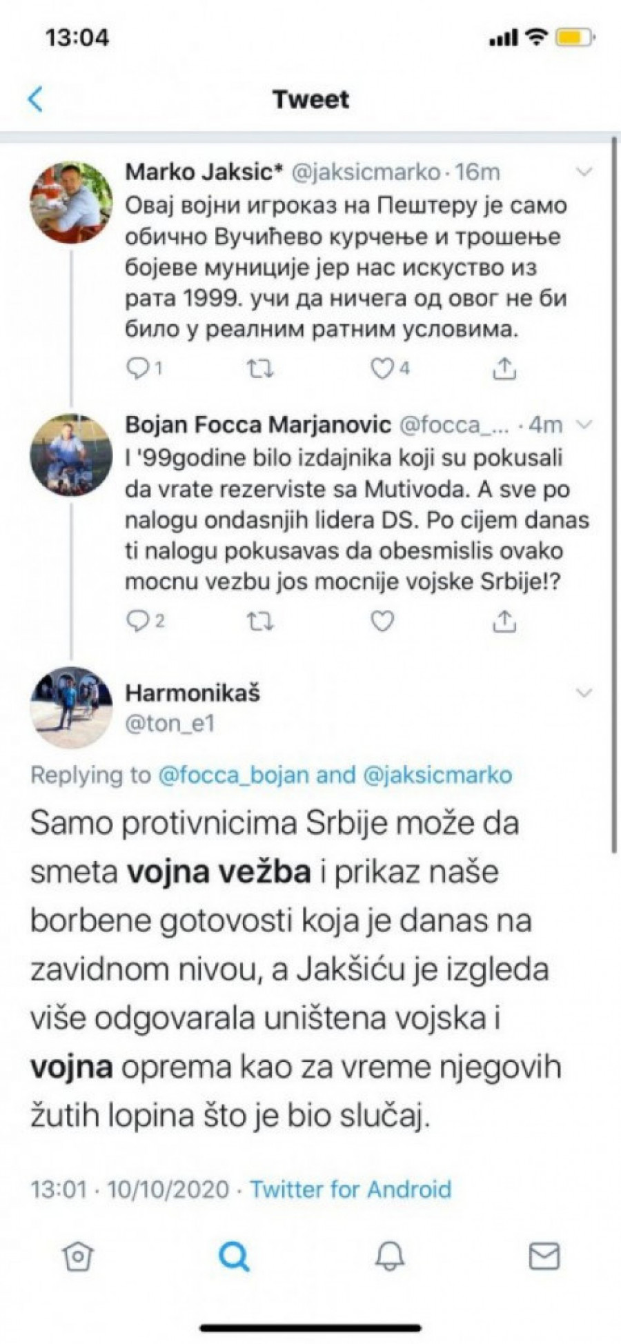 Foto: twitter.com/printscreenZa to vreme đilasovac Marko Jakšić pljunuo je na vojsku i borbeni moral, ali je ekspresno dobio odgovor kakav je zaslužio.