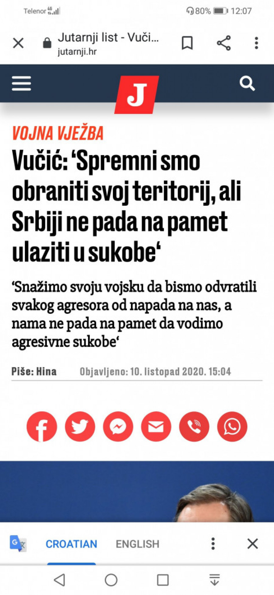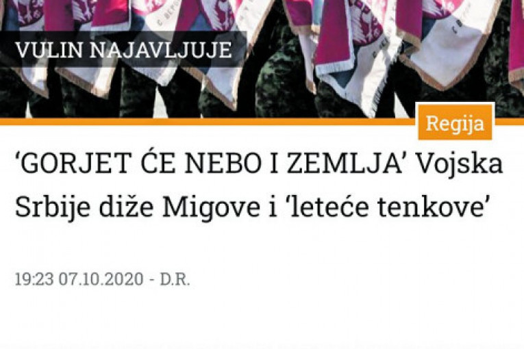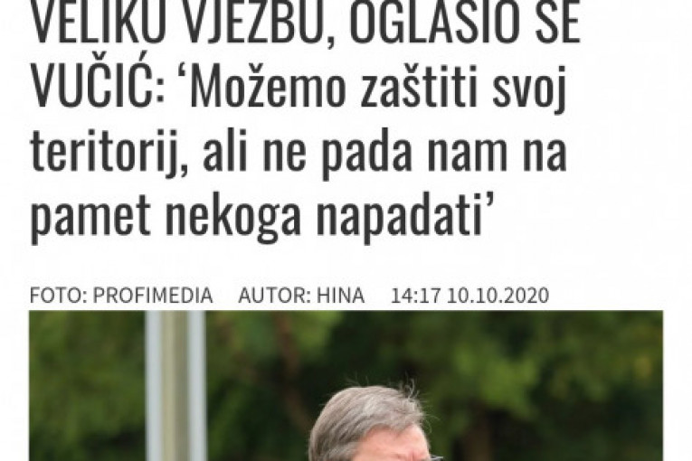 Vojna vežba srpske vojske izazvala je poštovanje čak i Hrvata, koji tradicionalno pljuju srpsku vojsku, ali ne i saradnika Dragana Đilasa. Avioni, moćni helikopteri poput "letećeg tenka", koji su bili deo spektakla na Pešteru u okviru vežbe "Sadejstvo 2020." za đilasovce su povod da, koristeći Vojsku, pljuju Aleksandra Vučića i vlast, koja je uspela da borbenu gotovost podigne na mnogo viši nivo nego što je to bilo u vreme njihove vlasti.