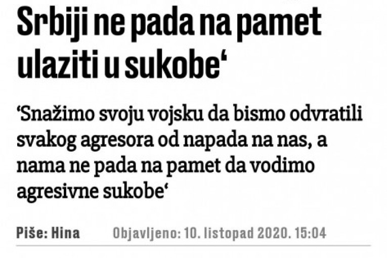 - Vučić vodi politiku mira, razumevanja, napadaju ga kada želi da postigne kompromis, napadaju ga i kada oprema Vojsku... Ništa im ne odgovara. Ne postoji nijedan razuman građanin Srbije koji ne želi da njegova država ima dobru odbranu i Vojsku. Nismo čuli šta to ne valja u nabavci i jačanju Vojske, čuli smo samo da se Vučić razmeće, ali ne i šta bi to bolje moglo i trebalo da se uradi.