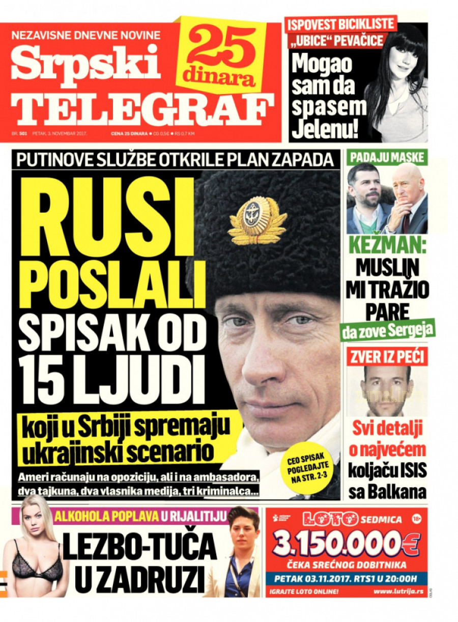 Rusi su po nalogu Vladimira Putina dostavili Srbiji spisak od 15 ljudi koji su u sprezi sa zapadnim službama i direktno uključeni u planiranje ukrajinskog scenarija u našoj zemlji.