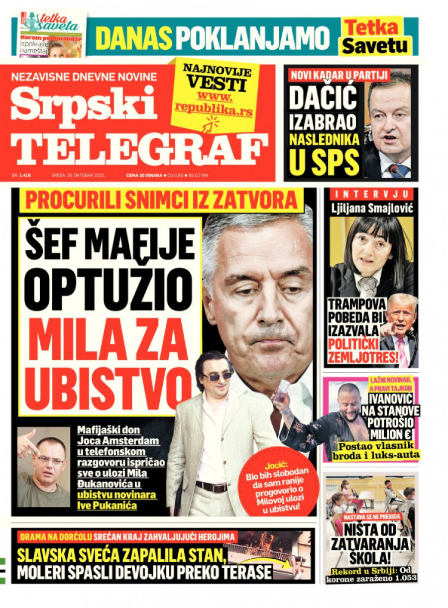 Naime, zagrebački Nacional juče je objavio da poseduje snimak telefonskog razgovora koji ukazuje da bi nalogodavac ubistva Pukanića mogao biti Đukanović. Jocić u tom razgovoru, snimljenom u zatvoru, kaže da je mogao "da bude slobodan čovek da je progovorio o Đukanovićevoj ulozi" u tom atentatu. Jocić, prema navodima Nacionala, kaže da je u zatvoru 12 godina i da je mogao namestiti predsednika Crne Gore i da živi u Kostarici, ali da to nije uradio.