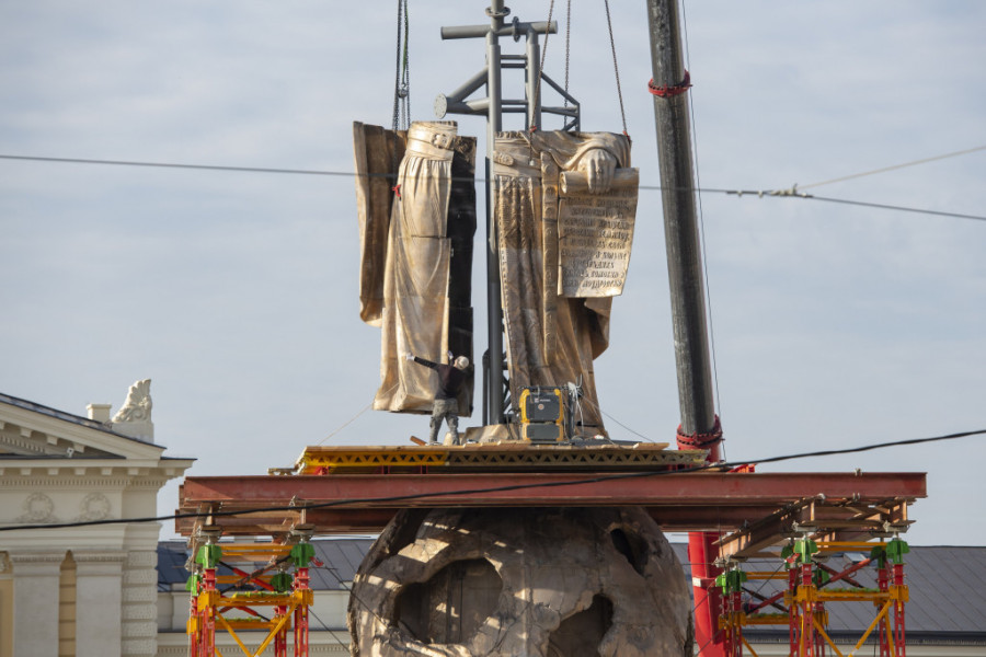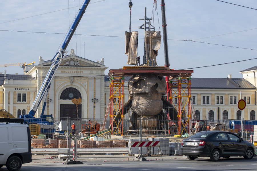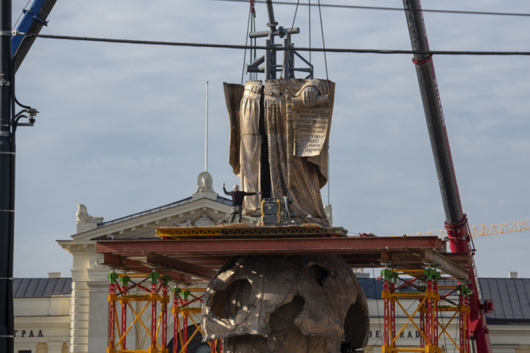 Radovi na postavljanju spomenika osnivaču srpske države Stefanu Nemanji u centru Beograda odvijaju se punom parom.