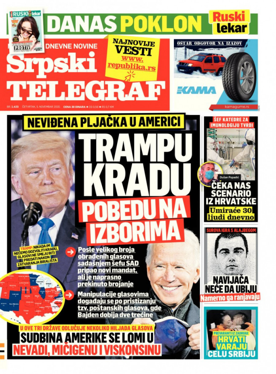 Foto: Tanjug/S. RADOVANOVIĆSrpski telegraf u štampanom izdanju za 5. novembar donosi pregršt važnih i interesantnih priča.
