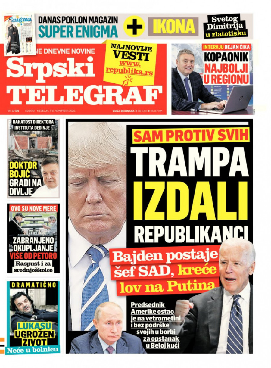 Foto: ST/ D. KADIĆSrpski telegraf u štampanom izdanju za 7-8. novembar donosi pregršt važnih i interesantnih priča.