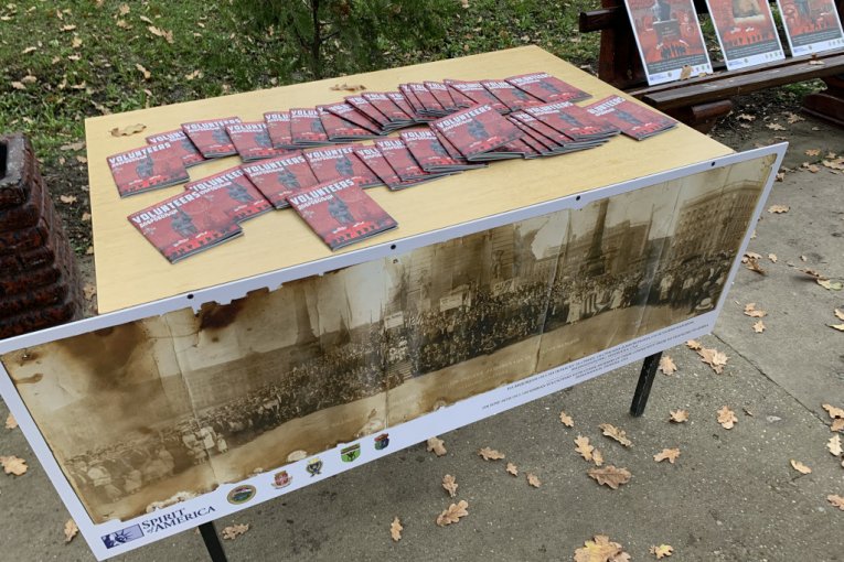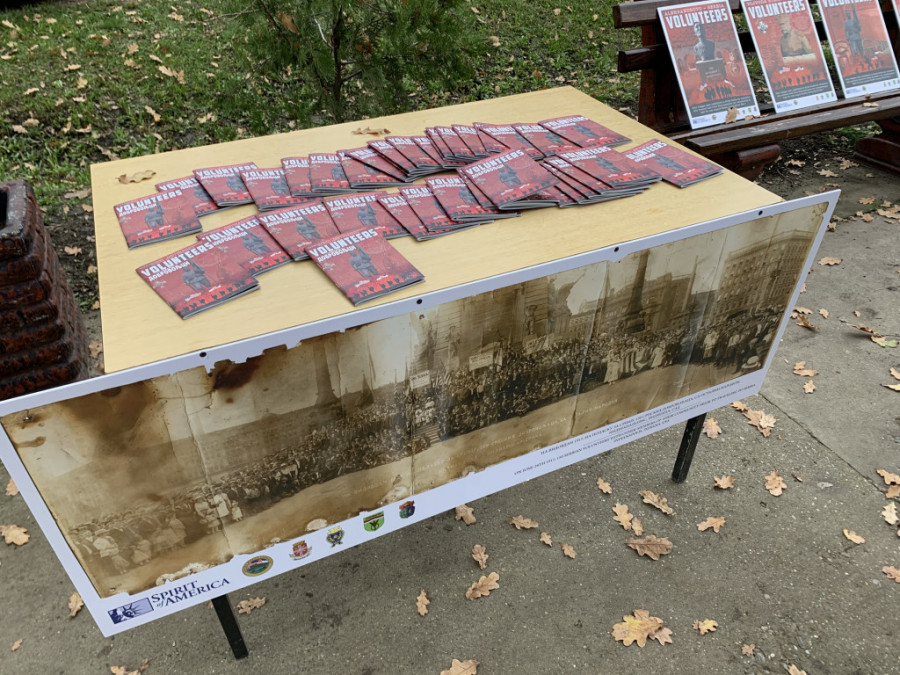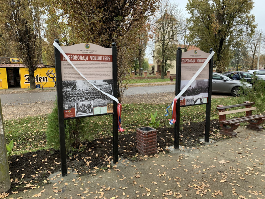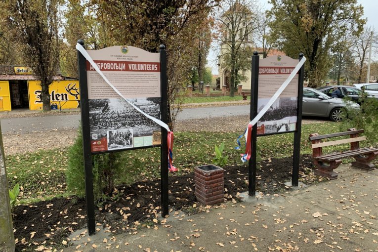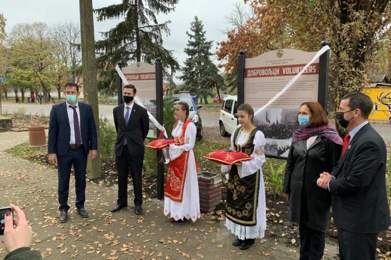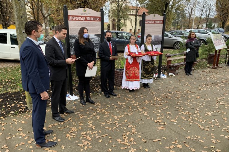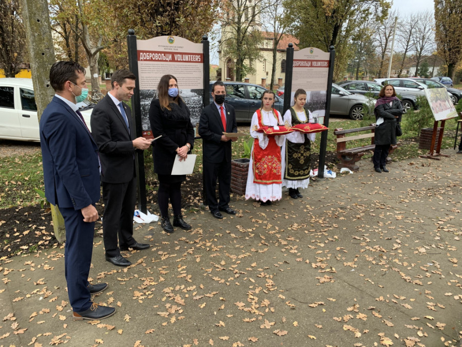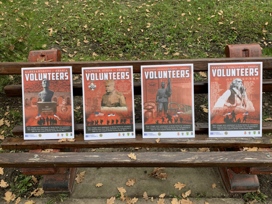 - Danas proslavljamo Dan veterana, koji se obeležava u Americi i Dan primirja koji se obeležava u celom svetu u znak završetka Prvog svetskog rata. Imamo čast da smo danas u jednom od dobrovoljačkih sela u Banatu gde smo postavili dve istorijske table i napravili malu izložbu na otvorenom - rekao je Kapelo.