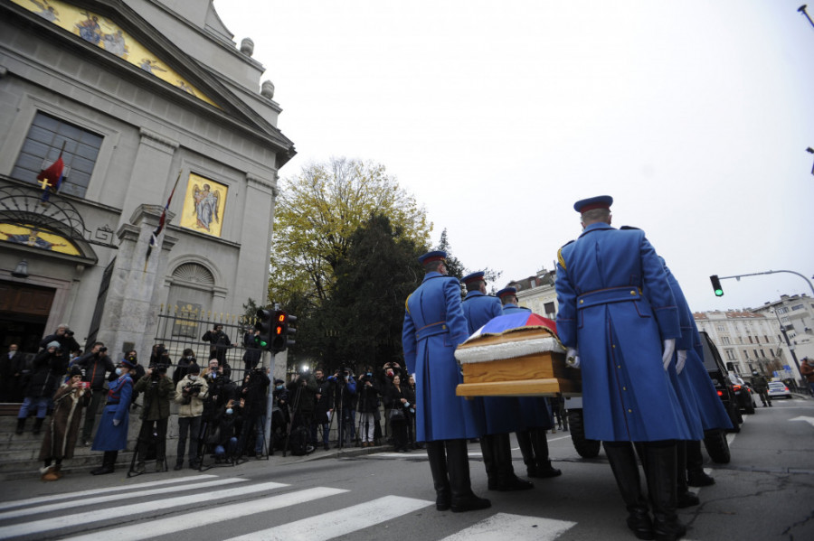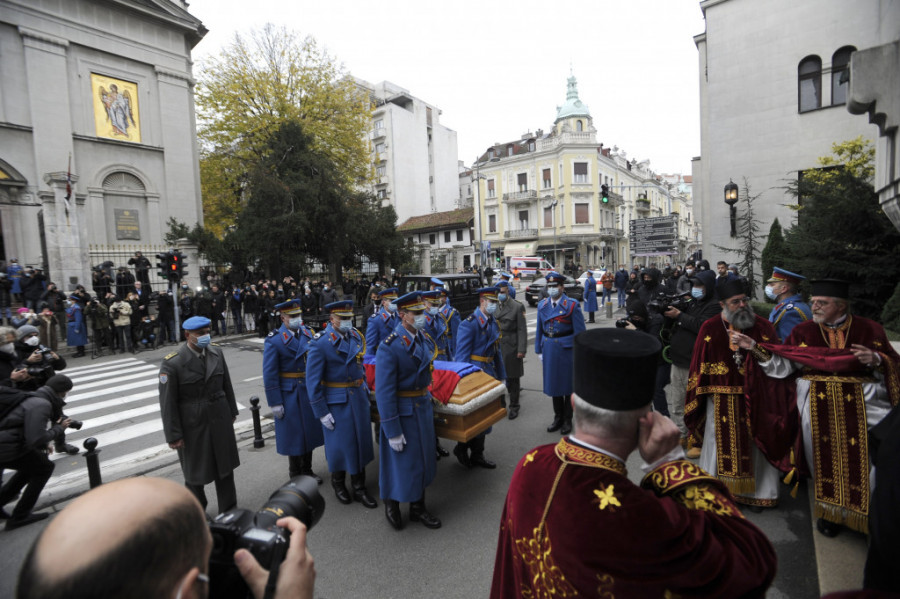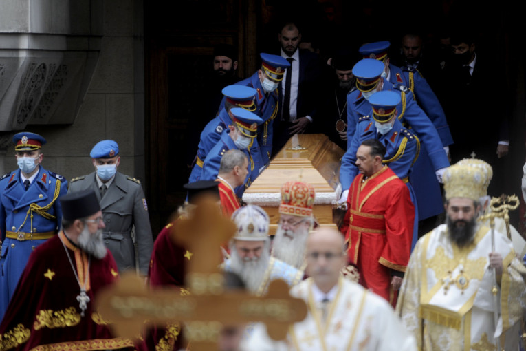Nakon kraćeg pomena u Patrijaršiji, kovčeg je uz počasnu gardu Vojske Srbije i arhijereje SPC unet u Saborni hram, gde će biti služena praznična i zaupokojena liturgija.