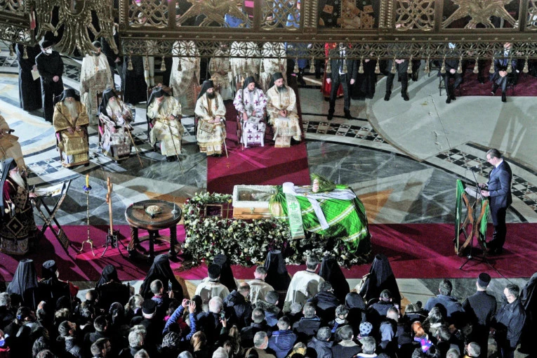 - Počivši patrijarh sklopio je oči i predao dušu Bogu sa samo jednom željom, jednim amanetom, za sve koji smo ostali: Da njegov hram, njegov san, nikada ne porušimo. Da ostanemo ono što je stvarao, posvećen Bogu, ljubavi, Srbiji i srpstvu. Da verujemo, volimo i da to radimo zajedno, okupljeni u hramu mudrosti i mira - rekao je Vučić.