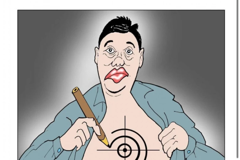 Dnevni list Danas objavio je Koraksovu karikaturu predsednika Srbije Aleksandar Vučića koji sebi crta metu na grudima.