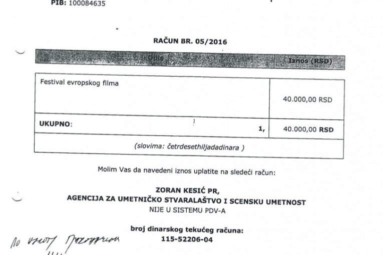 Pod plaštom različitih aktivnosti poput Festivala evropskog filma, učestvovanja na Sajmu vina, prevođenja, tekstova za list Danas, samo 2016. iz budžeta je isplaćivano od 30.000 do 50.000 dinara na račun Kesićeve agencije, a ukupan iznos za tu godinu dostigao je sumu od 865.400 dinara.