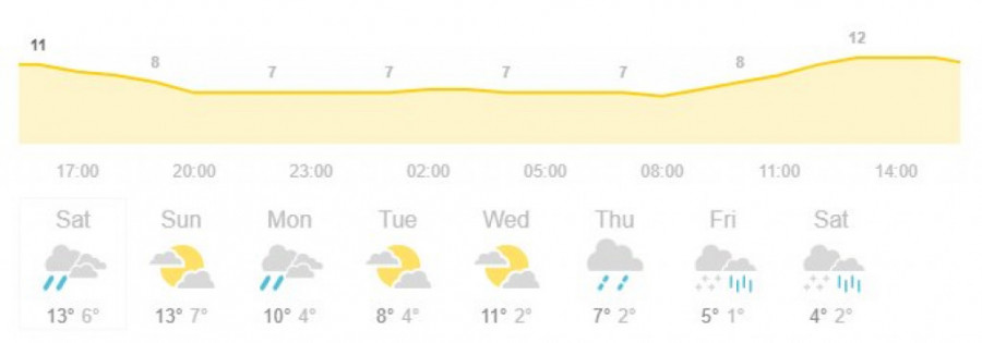 Za vikend osetno hladnije a i stiže nam prvi sneg sa primasima kiše. Te će se temperatura kretati od 0 do 3 stepena najniža a najviša dnevna od 1 do 5 stepeni celzijusovih.