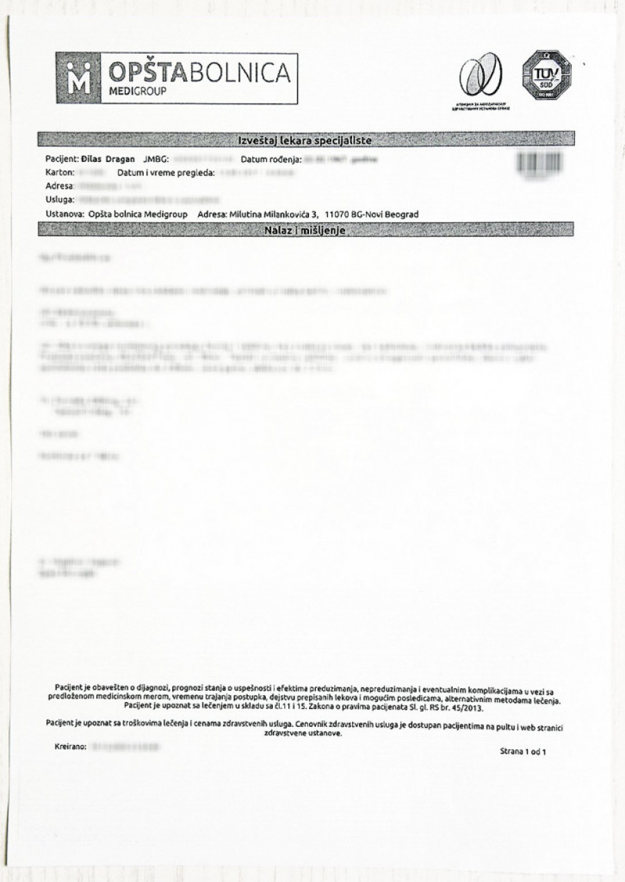Kada smo im predočili da raspolažemo kompletnom dokumentacijom kao dokazom da su procurili lični i medicinski podaci velikog broja pacijenata, "Medigrupa" nam je najpre negirala da se to desilo, a potom su nam i pretili tužbom.