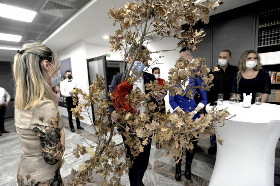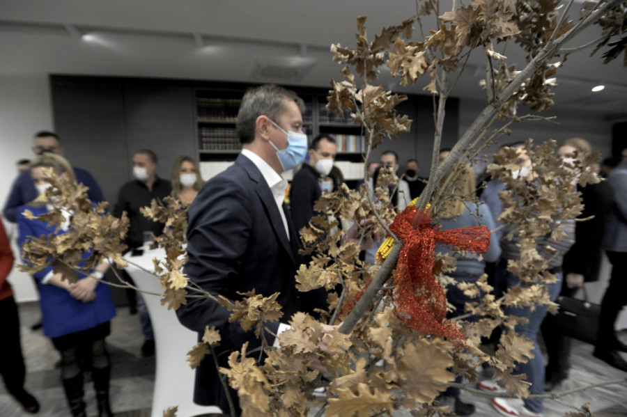 Češnicu su "lomili" stranački funkcioneri i ministri u vladi Siniša Mali, Branislav Nedimović, Marija Obradović i Nikola Selaković, koji je izvukao novčić iz česnice.