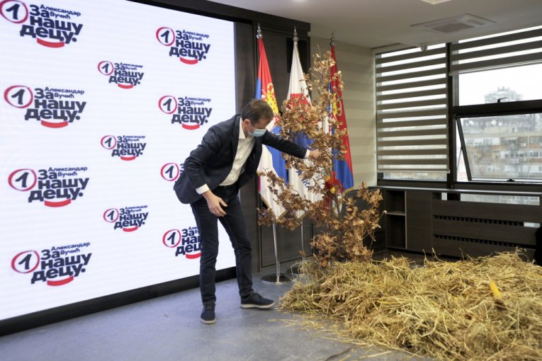 (FOTO) BADNJI DAN U SEDIŠTU SNS: Lomila se česnica, a ON je imao najviše sreće