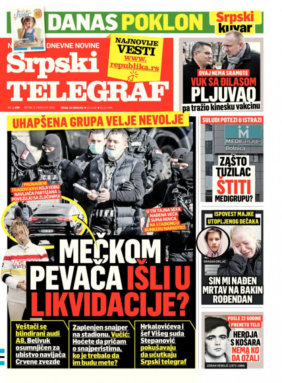 Imali dojavu o akcijiSrpski telegraf saznaje da su Nevolja i njegova grupa, kada je krenula akcija, dobili poruku da beže. Pretpostavlja se da je on zbog toga krenuo na Rudnik, gde je i uhapšen, dok su njegovoj desnoj ruci Marku Miljkoviću lisice stavljene kod zgrade Pinka. Uhapšena je i Belivukova supruga. Velja i njegovi saradnici su na Rudniku planirali da spale više automobila korišćenih u kriminalnim radnjama, ali je policija bila brža. |