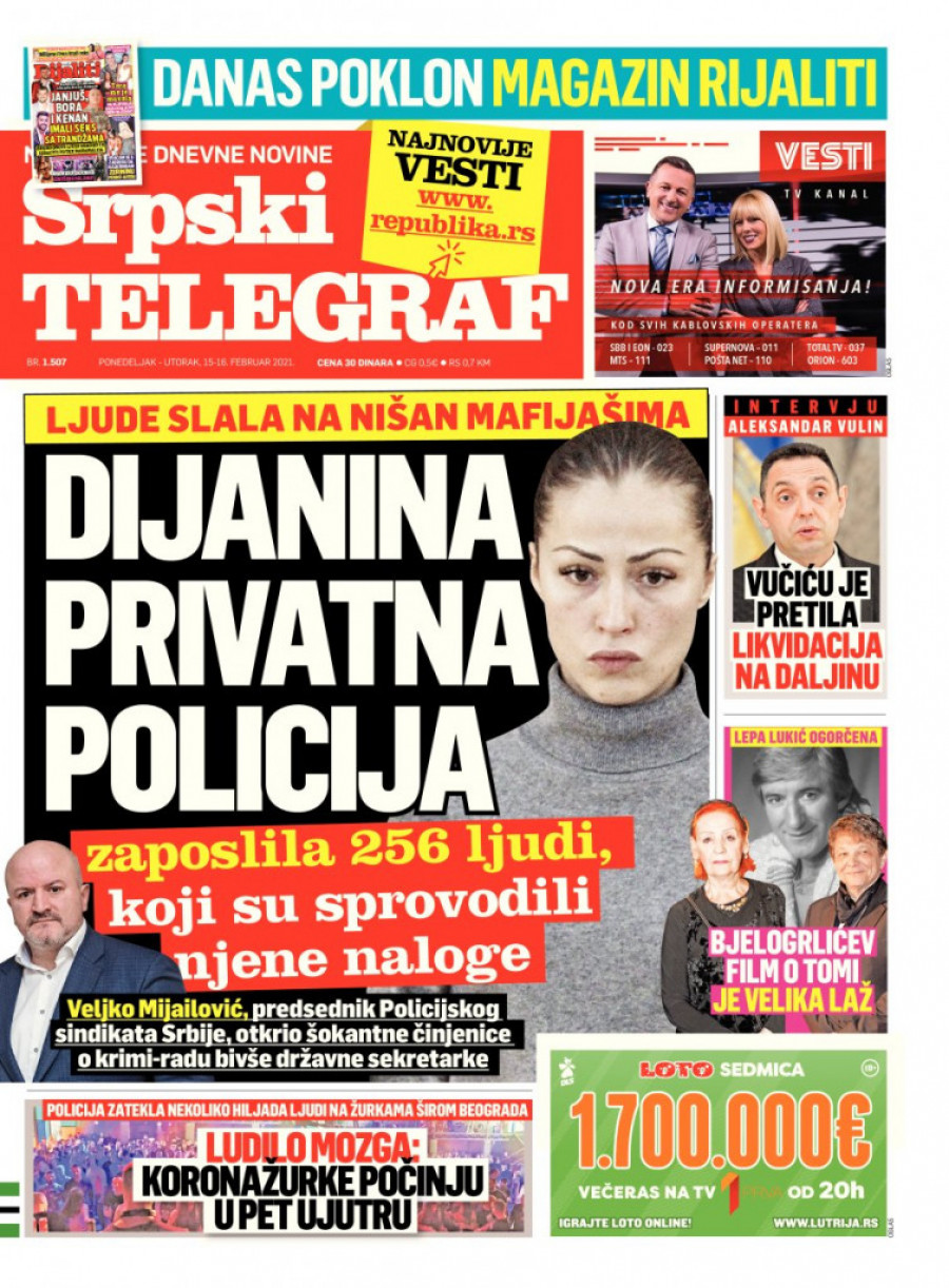 - Šta je krila i zašto bi to radila ako nije bila u bliskim vezama sa kriminalcima? Kolege su nam pričale da je službenim vozilima odlazila u objekte gde se okupljala mafijaška ekipa, što znači da je mislila da je nedodirljiva, pa te veze i nije krila. Ona je toliko izbušila policiju iznutra da je, dok nije počelo čišćenje MUP od njenih kadrova, veliki deo istrage oko Velje Nevolje i njegovog klana morala da preuzme BIA - kaže prvi čovek PSS.