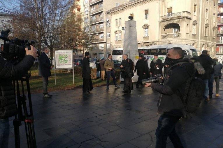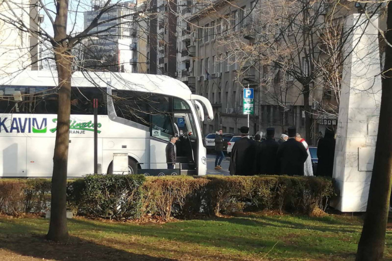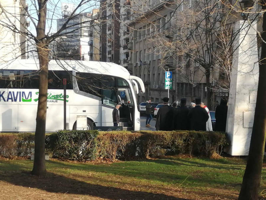 Kako javljaju naši reporteri, oni su stigli autobusom. Ubrzano su ušli u Hram, gde u 9 časova počinje služenje svete liturgije.