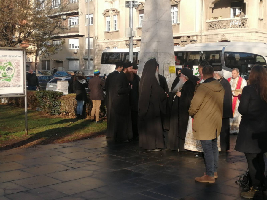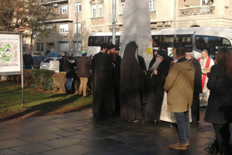 Kako javljaju reporteri Republike ispred Hrama svetog Save, vrata hrama posle ulaska arijereja su zatvorena.