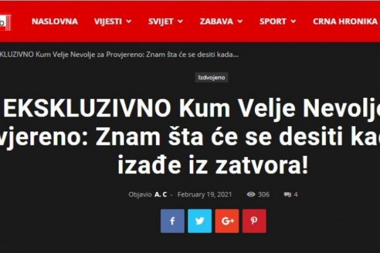 Tekst portala, inače, pun je hvalospeva o Belivuku, izrečenih iz usta kuma. On je predstavljen, maltene, kao dobrotvor, koji ni mrava nije zgazio. Taj i takav "dobrica", međutim, poručuje da će se, čim izađe iz zatvora, a to će, kaže kum, biti za šest-sedam meseci, osvetiti vlastima (SNS mu je, tvrdi kum, smestio hapšenje), kao i medijima koji su ga, navodno, blatili.