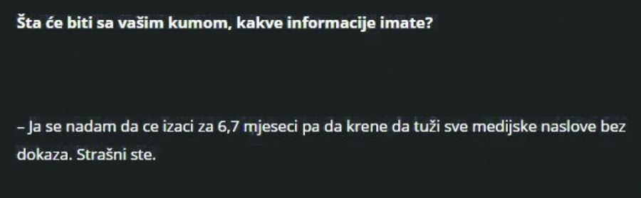 A onda je na pitanje šta će biti sa njegovim kumom i kakve informacije ima odgovorio: