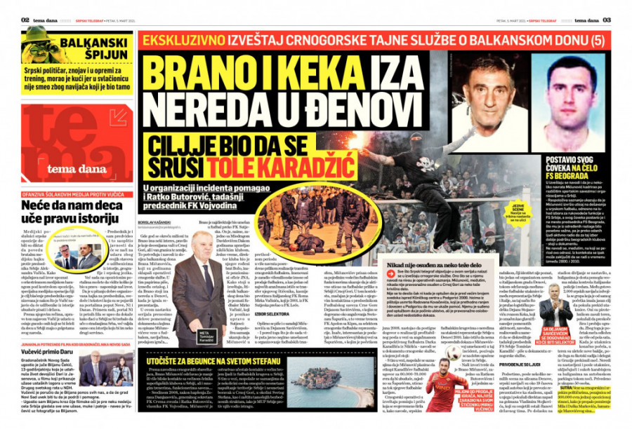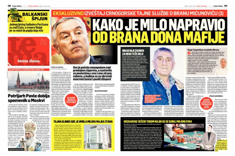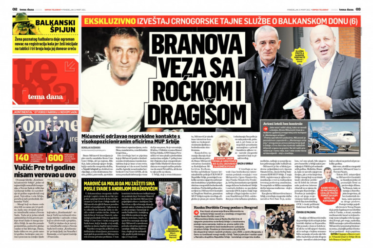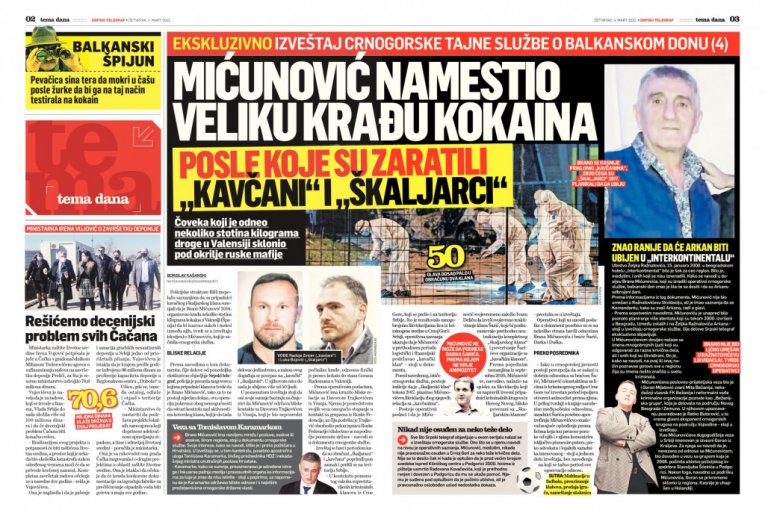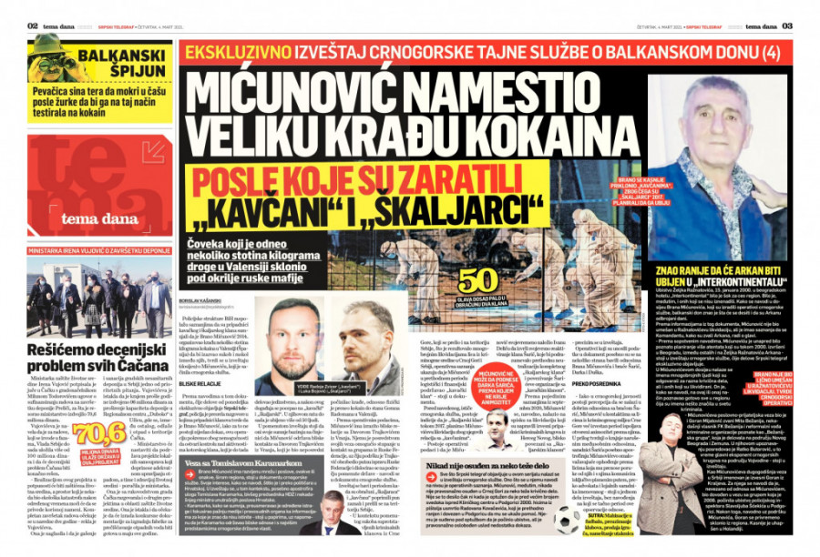 - Mićunović se, takođe, zamerio "škaljarcima" kada su saznali za njegov nalog svom čoveku od poverenja Ivanu Deliću da krene u akciju povezivanja "kavačkog klana" i ostataka grupe Darka Šarića. Oni bi se spojili u jedan klan i time bi "škaljarci" bili potpuno neutralisani - stoji u izveštaju u kom se navodi i da su se tokom 2020. ponovo pojavile priče da je Brano na spisku za likvidaciju izvesnih pripadnika kriminalnih krugova iz Herceg Novog bliskih "škaljarskom klanu".
