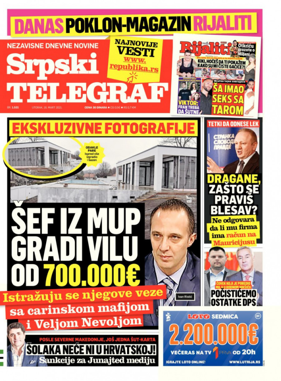 Da se iza svega kriju neke mutne radnje, potvrđuje drugi naš sagovornik, što i nije teško zaključiti, budući da državni posao, pa ni posao bilo kakvog funkcionera iz samog vrha MUP, ne može da obezbedi ovoliku svotu novca.