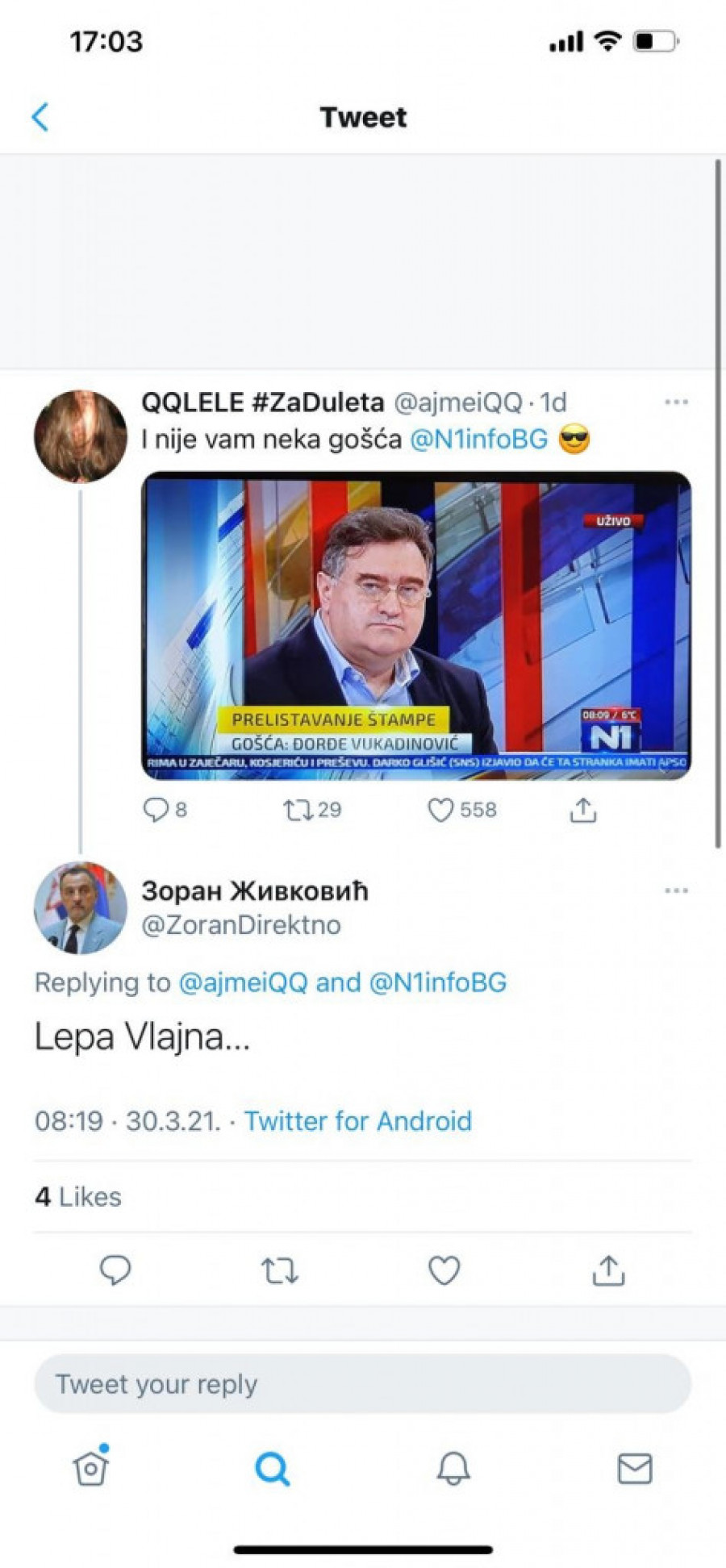 Ovome se nasmejao i Zoran Živković koji je na Tviteru napisao: Lepa Vlajna.