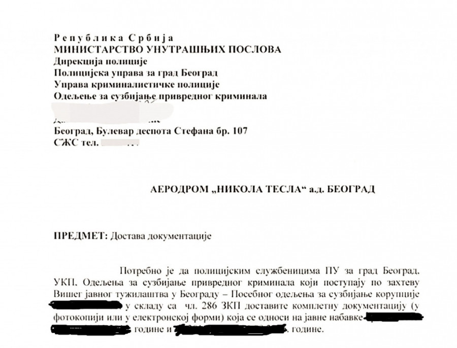 Vlaisavljevića, po nalogu Višeg javnog tužilaštva - Posebnog odeljenja za suzbijanje korupcije, češljaju inspektori Odeljenja za suzbijanje privrednog kriminala pri Upravi kriminalističke policije (UKP). Srpski telegraf došao je u posed dopisa upućenog preduzeću Aerodrom "Nikola Tesla" a. d., od kog se traži dostavljanje kompletne dokumentacije o javnim nabavkama.