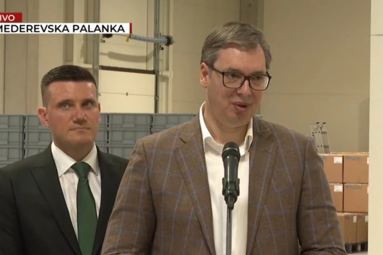 Foto: TV Pink/printscreenVučić je odgovarajući na pitanja novina posle svečanog otvaranja fabrike rekao da ga brine to što se malo dece rađa u mestima kao što je Smederevska Palanka.