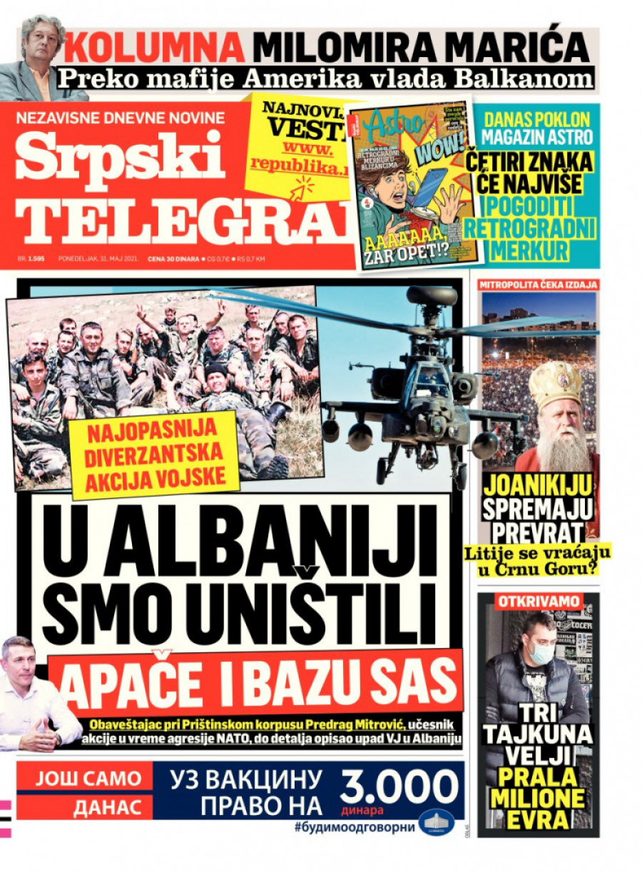 Foto: ATA ImagesSrpski telegraf u štampanom izdanju za petak 28. maj donosi pregršt važnih i interesantnih priča.