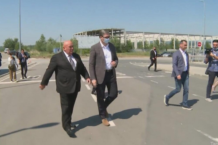 Predsednik je u Jagodinu stigao nešto posle 10 časova, nakon čega se sa gradonačelnikom Jagodine Draganom Markovićem Palmom uputio ka fabrici.