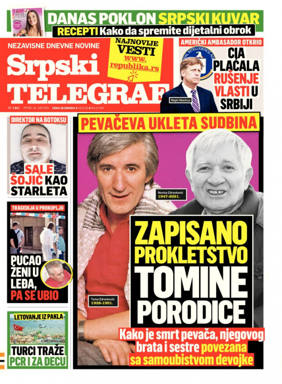 Foto: Tanjug/D. KUJUNDŽIĆSrpski telegraf u štampanom izdanju za petak 18. jun donosi pregršt važnih i interesantnih priča.