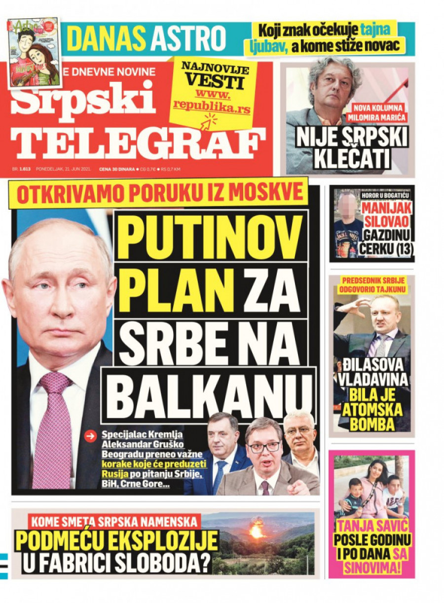 Foto: Printscreen/TwitterSrpski telegraf u štampanom izdanju za 21. jun donosi pregršt važnih i interesantnih priča.