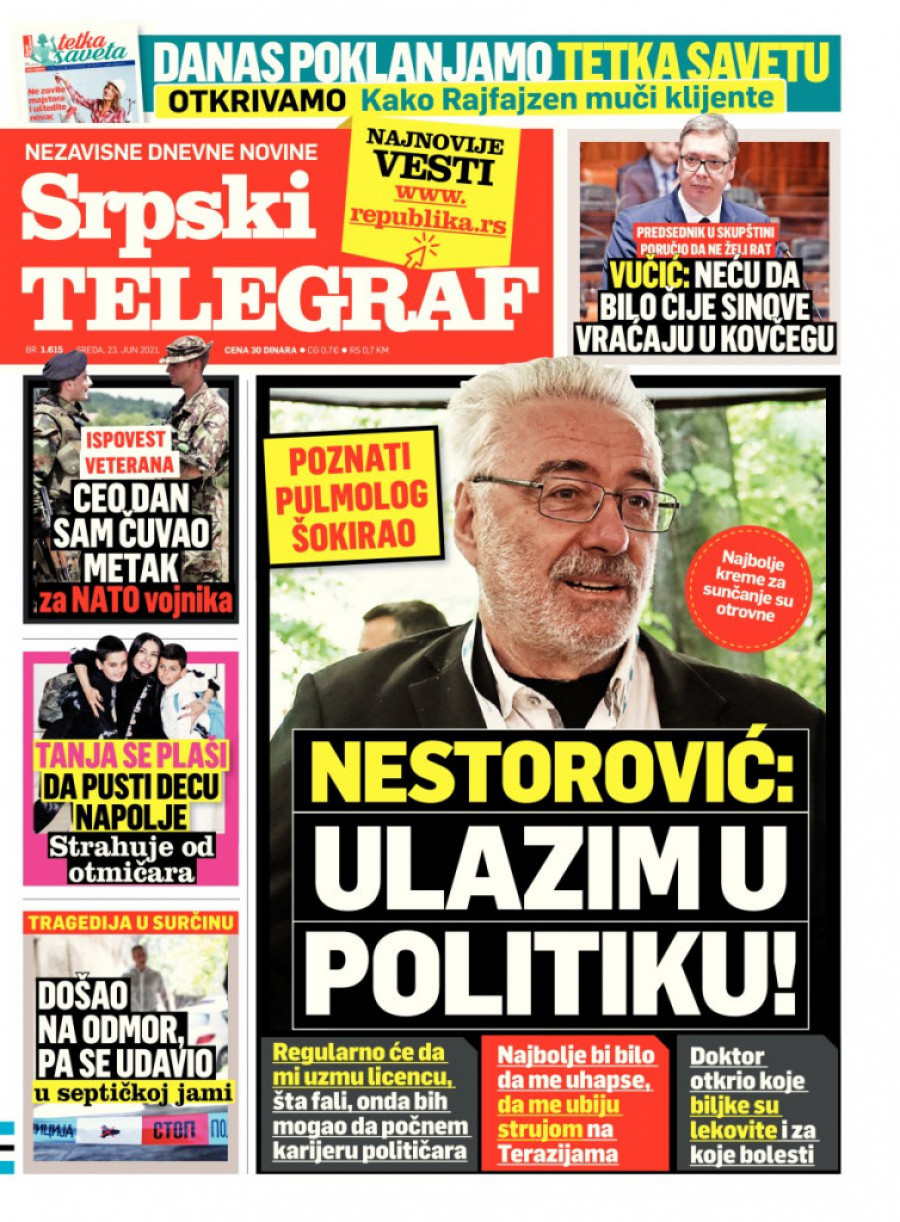 Foto: Tanjug/J. PAPSrpski telegraf u štampanom izdanju za sredu 23. jun donosi pregršt važnih i interesantnih priča.