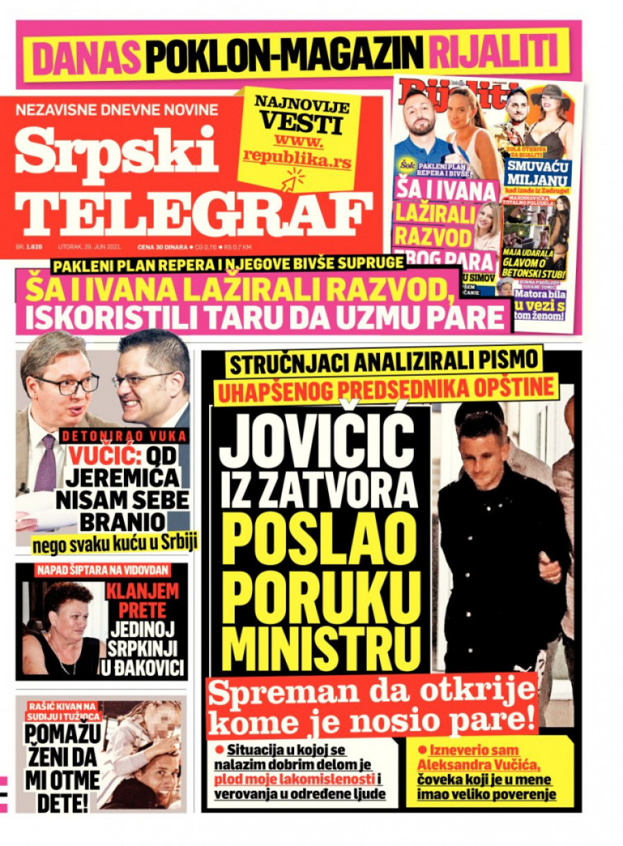 Foto: Tanjug/APSrpski telegraf u štampanom izdanju za utorak 29. jun donosi pregršt važnih i interesantnih priča.