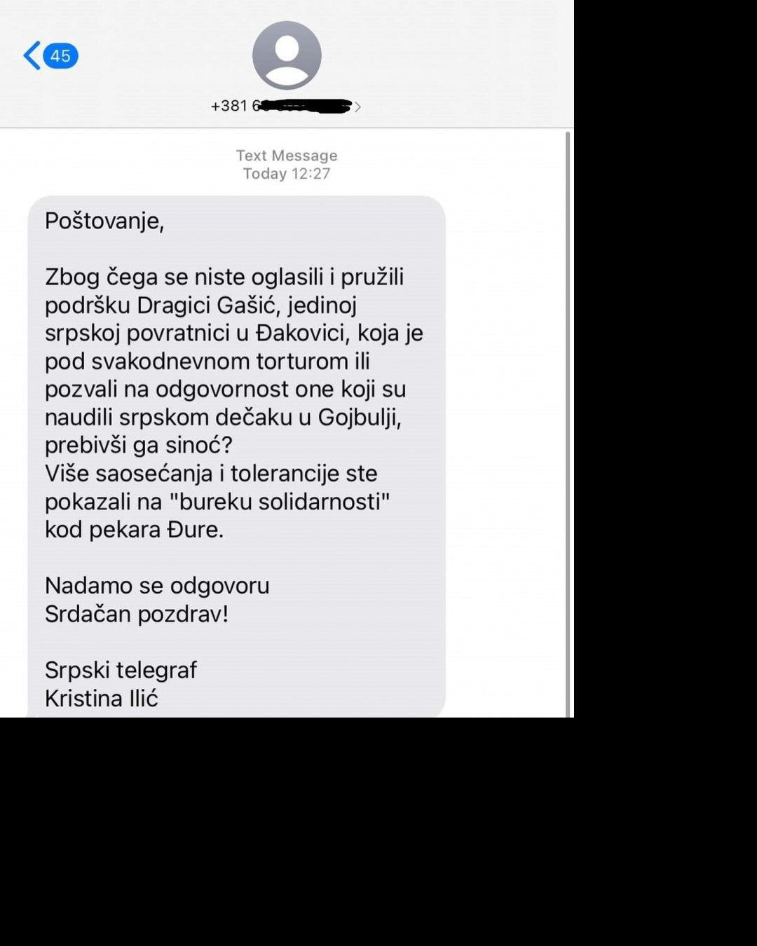 Nakon što mu je naša novinarka najljubaznije poslala SMS, i zamolila za odgovor na pitanje zbog čega nije pružio podršku Dragici Glišić, lider PSG nije bio nimali prijatan.