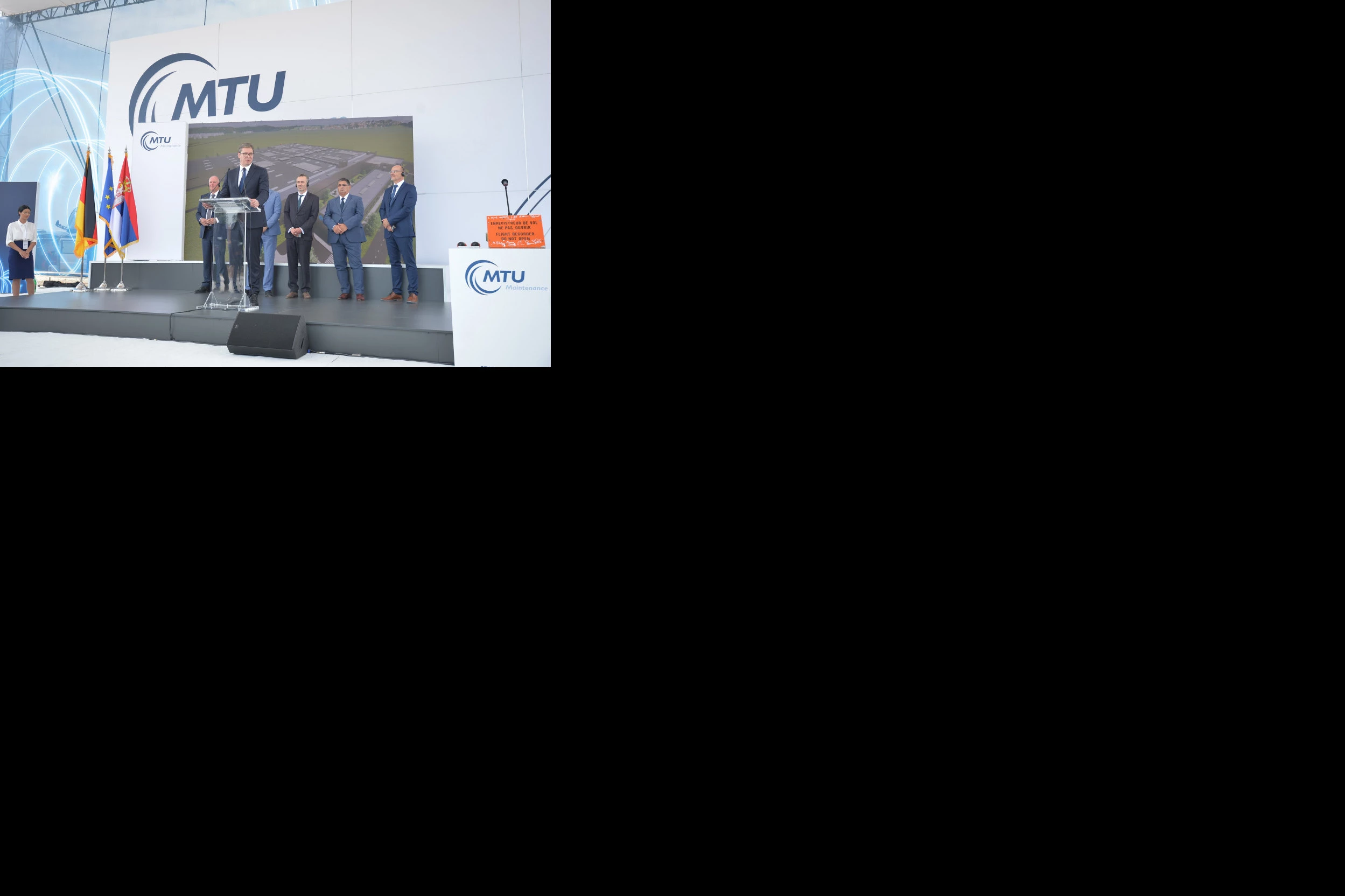 Predsednik Srbije Aleksandar Vučić prisustvuje u Novoj Pazovi početku radova na izgradnji postrojenja za popravke aviomotora kompanije MTU Maintenance Serbia d.o.o (deo kompanije MTU Aero Engines AGE).