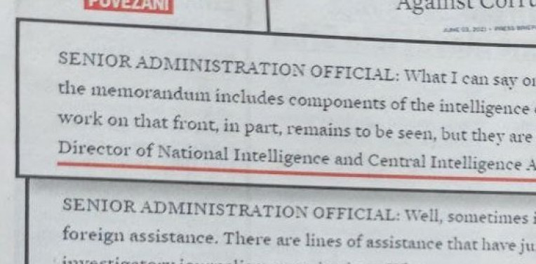 - Ono što mogu da kažem jeste da memorandum nacionalne bezbednosti, koji pokriva ovu temu, uključuje komponente obaveštajne zajednice. Tako da rad na tom frontu uključuje direktora Nacionalne obaveštajne službe i Centralnu obaveštajnu službu (CIA). Memorandumom je predsednik Bajden formalno ustanovio borbu protiv korupcije u svetu kao jezgro nacionalnih bezbednosnih interesa SAD - priča obaveštajac i dalje objašnjava na koga računaju, pominjući prvo USAID, a onda i još neke: