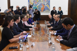 Predsednik Republike Srbije Aleksandar Vučić sastao se u Beogradu sa ministrom spoljnih poslova Turske Mevlutom Čavušogluom sa kojim je razgovarao o bilateralnim odnosima, ekonomskoj saradnji i o učešću turskih kompanija u regionalnim infrastrukturnim projektima.