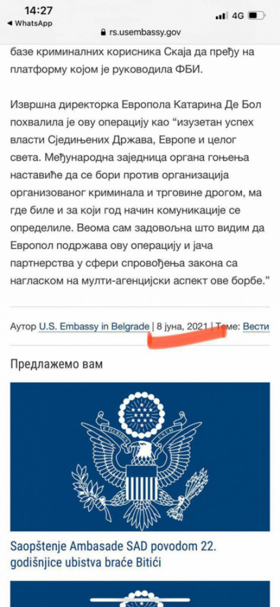Saopštenje ambasade SAD je s početka juna meseca i oni decidno kažu da su se u akciju uključili 7.juna. Podsećanja radi, Belivukova grupa pohapšena je 4.februara. Dakle, to saopštenje ambasade SAD ide u prilog onome što su Vučić i Vulin govorili.