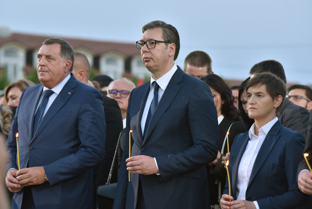 - Neka je večna slava svim žrtvama svih pogroma i oluja. Srbija je majka, a ne maćeha. Srbija pamti, živela Srbija - rekao je Vučić.