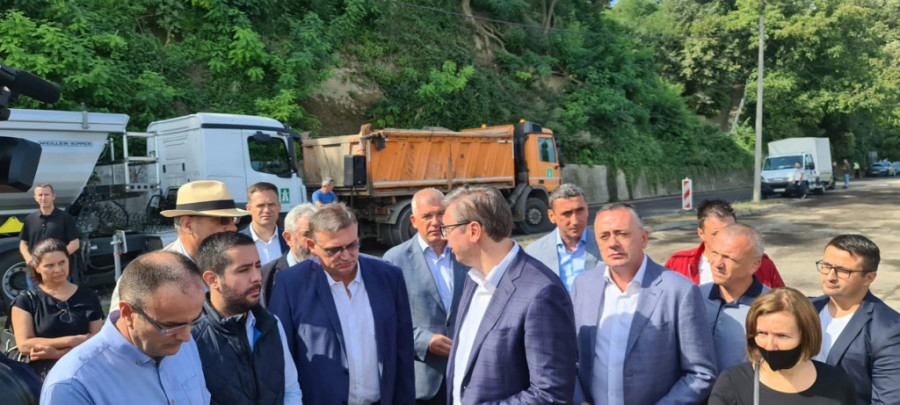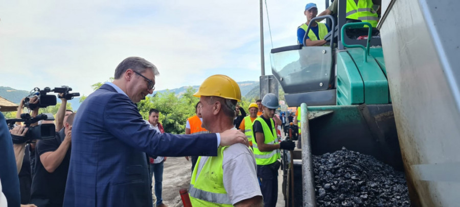 Predsednik je iskazao zadovoljstvo zbog gradnje i obnove puteva rekavši da je srećan što se posle toliko godina nešto radi, pokreće, gradi...