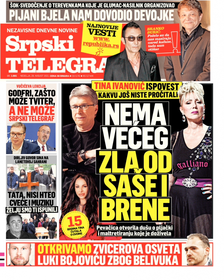 Srpski telegraf u štampanom izdanju za nedelju, 29. avgust donosi pregršt važnih i interesantnih priča.