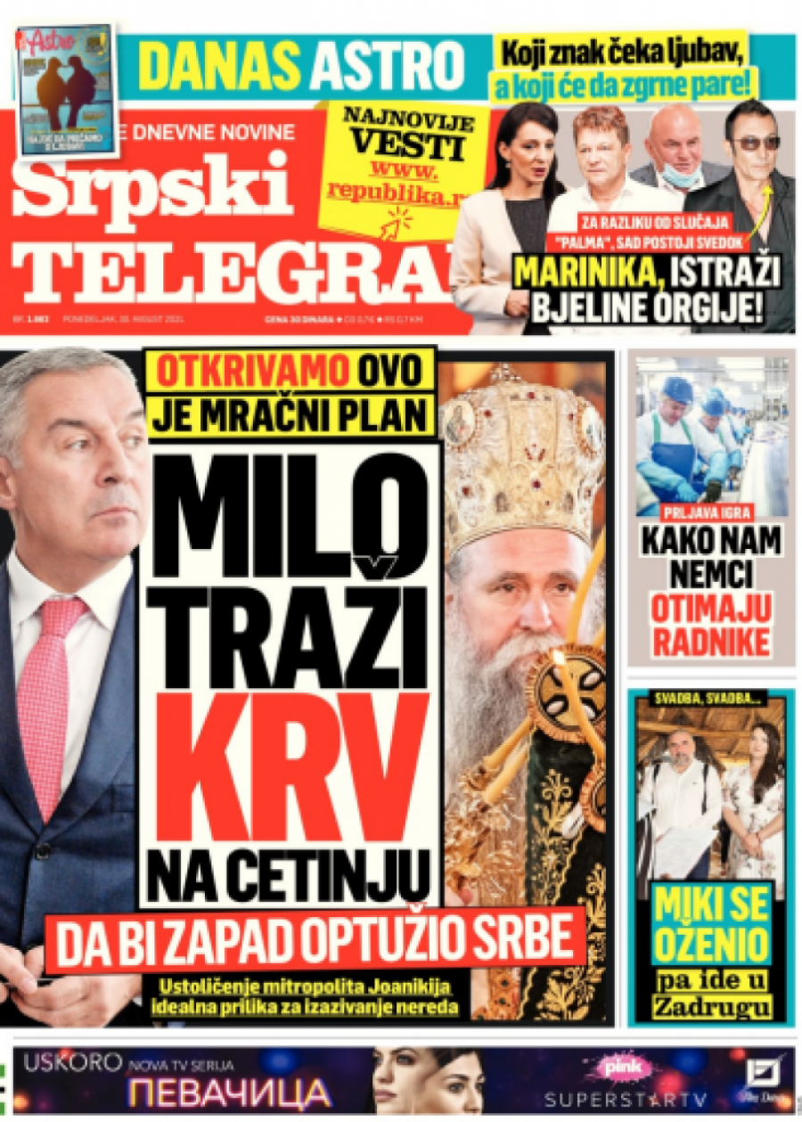 Srpski telegraf u štampanom izdanju za ponedeljak, 30. avgust donosi pregršt važnih i interesantnih priča.