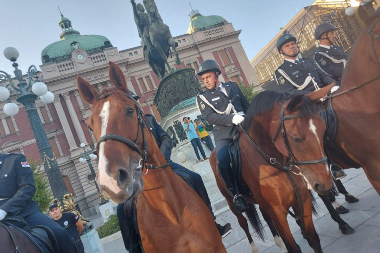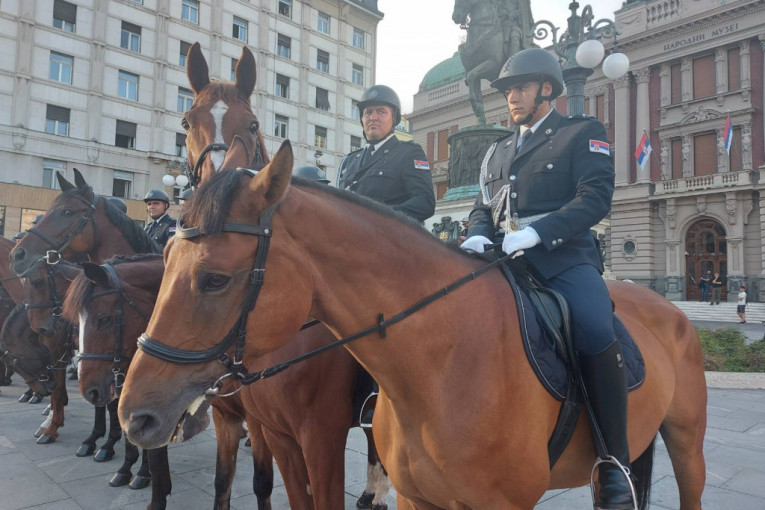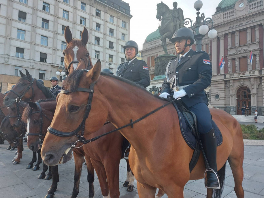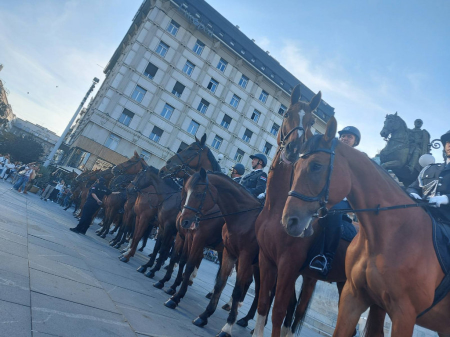 Konjička jedinica je krenula sa Trga republike ka spomeniku Stefanu Nemanji, i tom prilikom su zabeleženi ovi sjajni prizori na Terazijama. Ispred njih su paradirali mladići u uniformama srpske vojske iz Prvog svetskog rata.