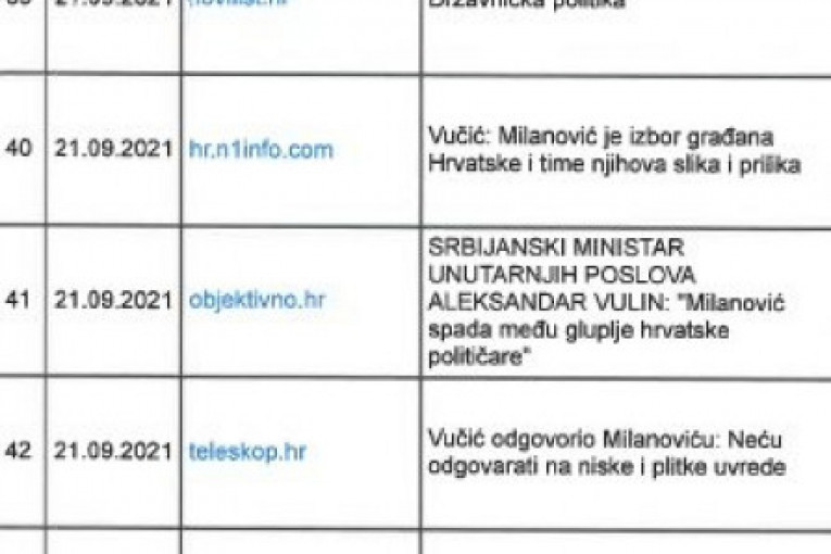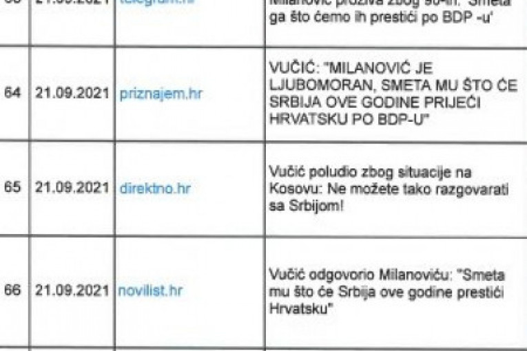 U jednom danu hrvatski mediji su objavili čak 122 vesti, izveštaja, izjava, tekstova, emisija o predsedniku Srbije, što samo govori o dubokoj frustriranosti Hrvatske, preziru prema sopstvenim liderima, ali i opsednutosti predsednikom Srbije, koji je očigledno postao jedina njihova meta.